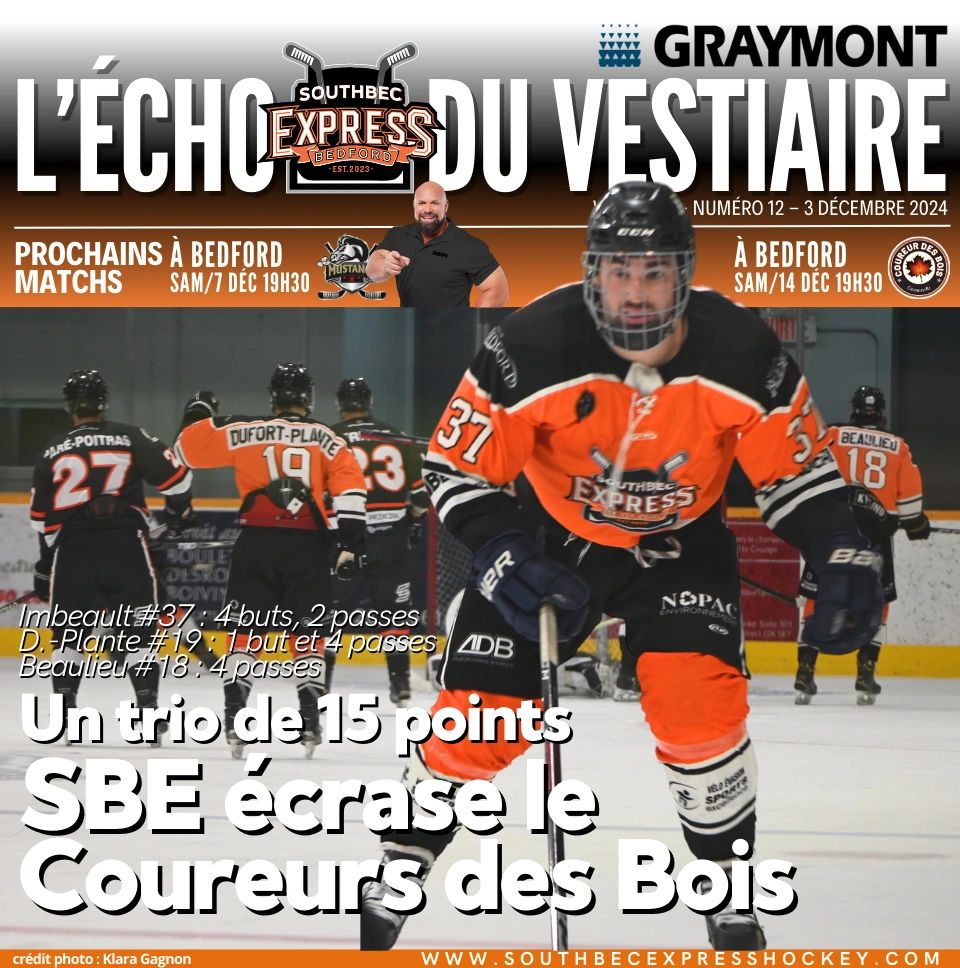𝗖𝗼𝘄𝗮𝗻𝘀𝘃𝗶𝗹𝗹𝗲 - Samedi soir, à l’aréna de Cowansville, le SBE a poursuivi sa série victorieuse en dominant les Coureurs des Bois 11-4, enregistrant ainsi une troisième victoire consécutive..