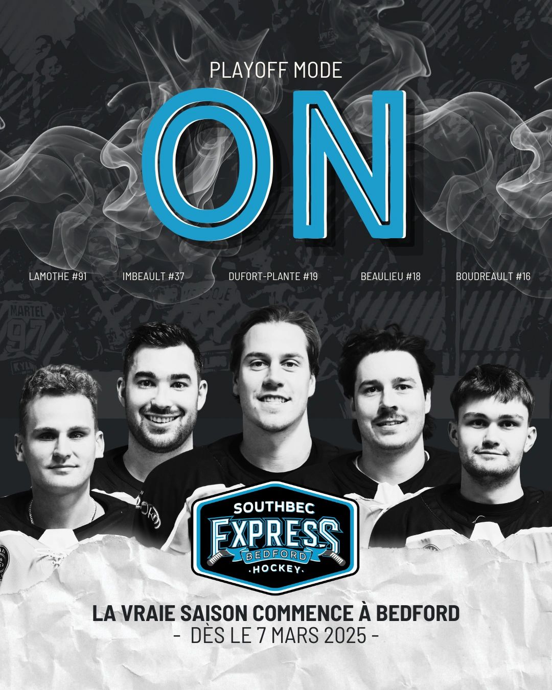C'est le 7 mars prochain que les séries éliminatoires de la LHSE débutent è Bedford. Lundi, l'identité de notre adversaire sera dévoilée. Passes de série en vente. Réservez votre place dès maintenant pour ne pas rien manquer.